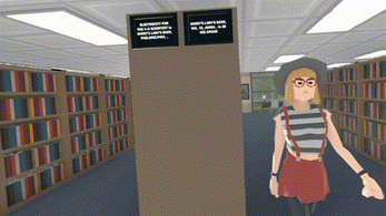 Optional NPC option adds an eccentric group of virtual patrons or NPCs (Non-Player Characters), who browse the library, art and wander the environment. Currently, there are 12 adults and 3 children.